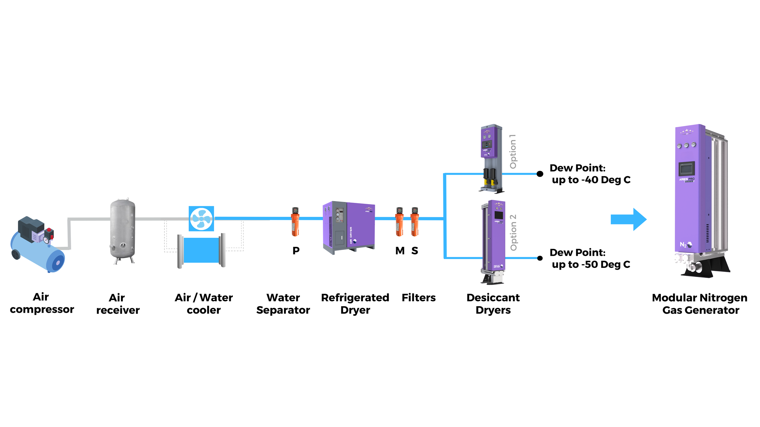 Liquid nitrogen systems can support larger volumes of gas demand but require cryogenic storage tanks, periodic refilling, and dependence on external gas deliveries.